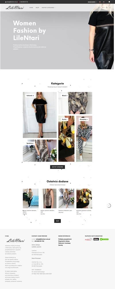 (ZdjÄ™cie) Prosty sklep WooCommerce - branża fashion, temat premium, 5 kategorii, 23 produkty, podstawowe SEO, integracja social media, koszyk z możliwoÅ›ciÄ… zakupu bez rejestracji, integracja pÅ‚atnoÅ›ci Przelewy24, dostawy, funkcja Wishlist, możliwość pdglÄ…du produktu z dowolnego miejsca w sklepie (zoom), filtrowanie po kolorze, rozmiarze. Kliknij i obejrzyj stronÄ™ na żywo.Â