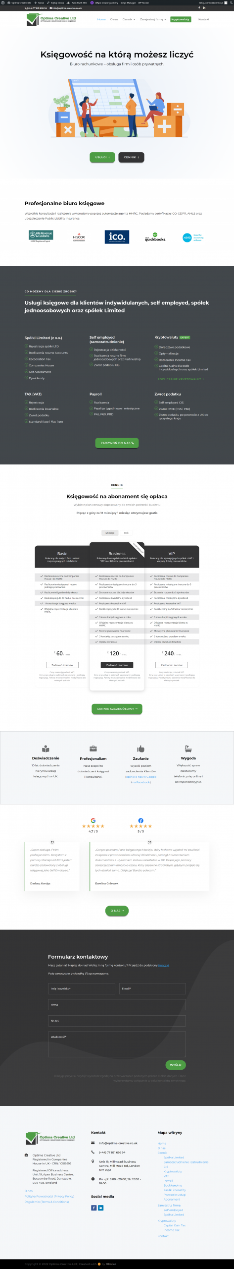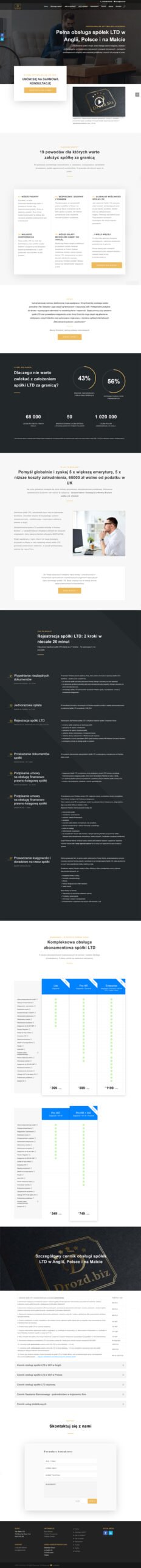 (Zdjęcie) Strona biznesowa - obsługa spółek ldt. na WordPress, temat premium, 1. podstrona (one-page), podstawowe SEO, local SEO, blog, integracja social media, formularz kontaktowy, tabele abonamentowe, komunikator (telefon, SMS, e-amil, Messenger. Kliknij i przejdź na stronę.